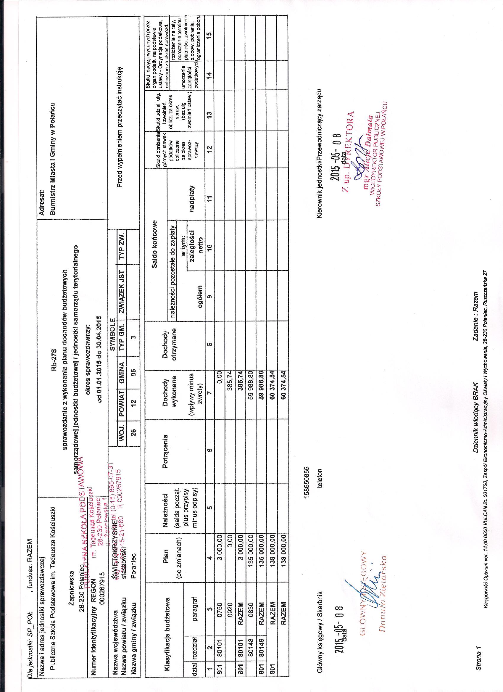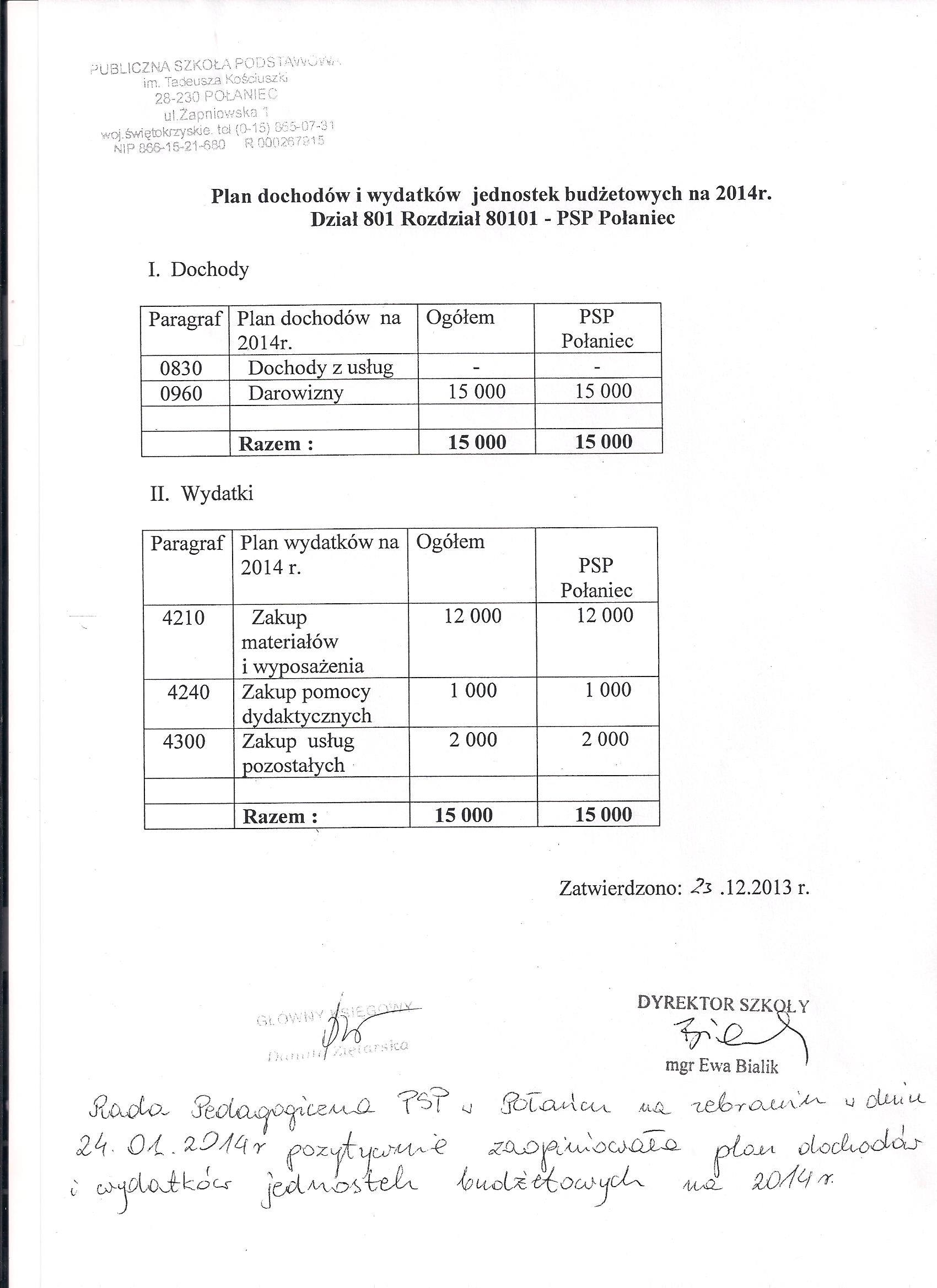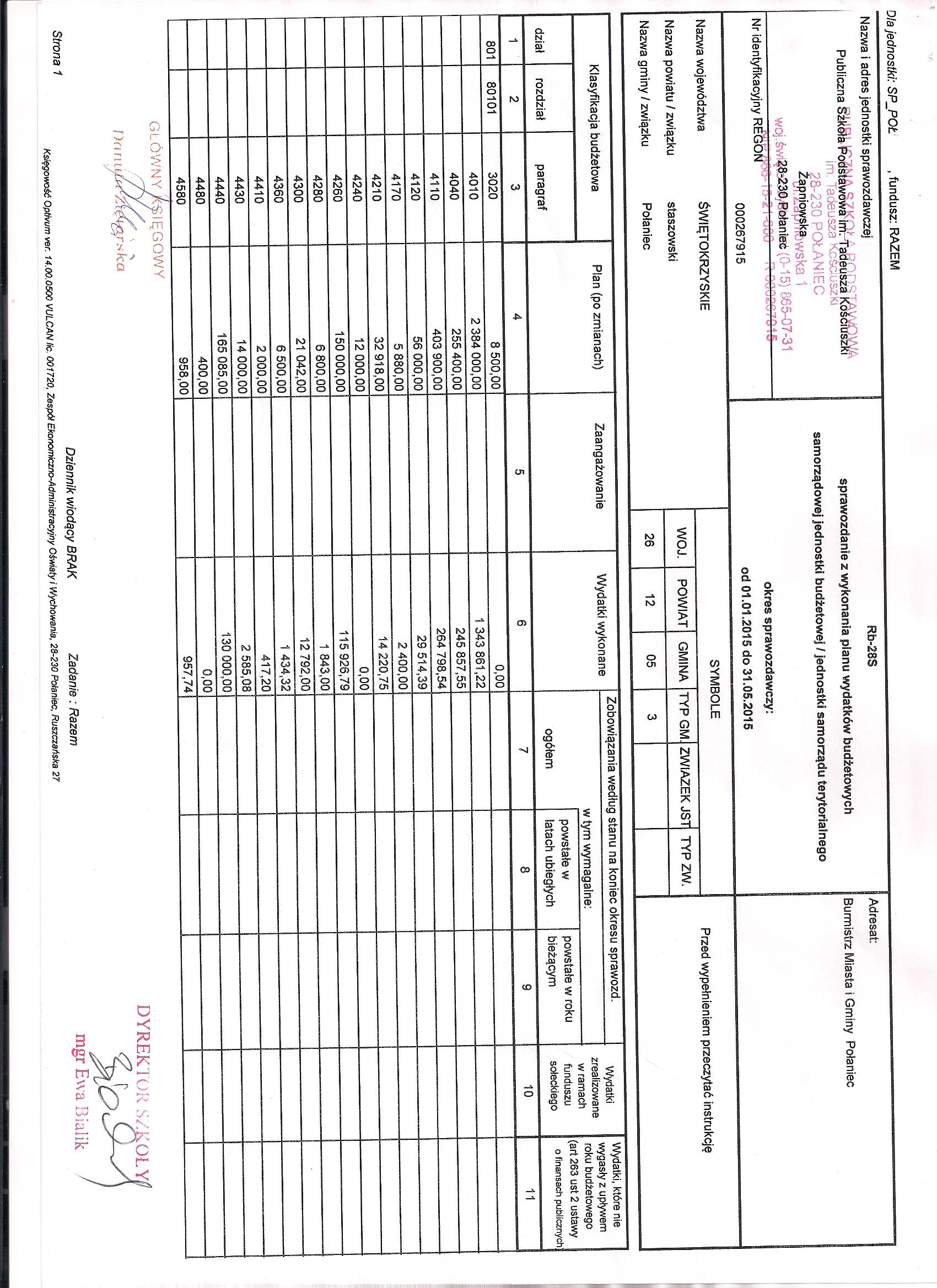 Zarządzenie Nr 2/2015 Dyrektora PSP w Połańcu z dnia 30 stycznia 2015 r. w sprawie zmian w planie finansowym