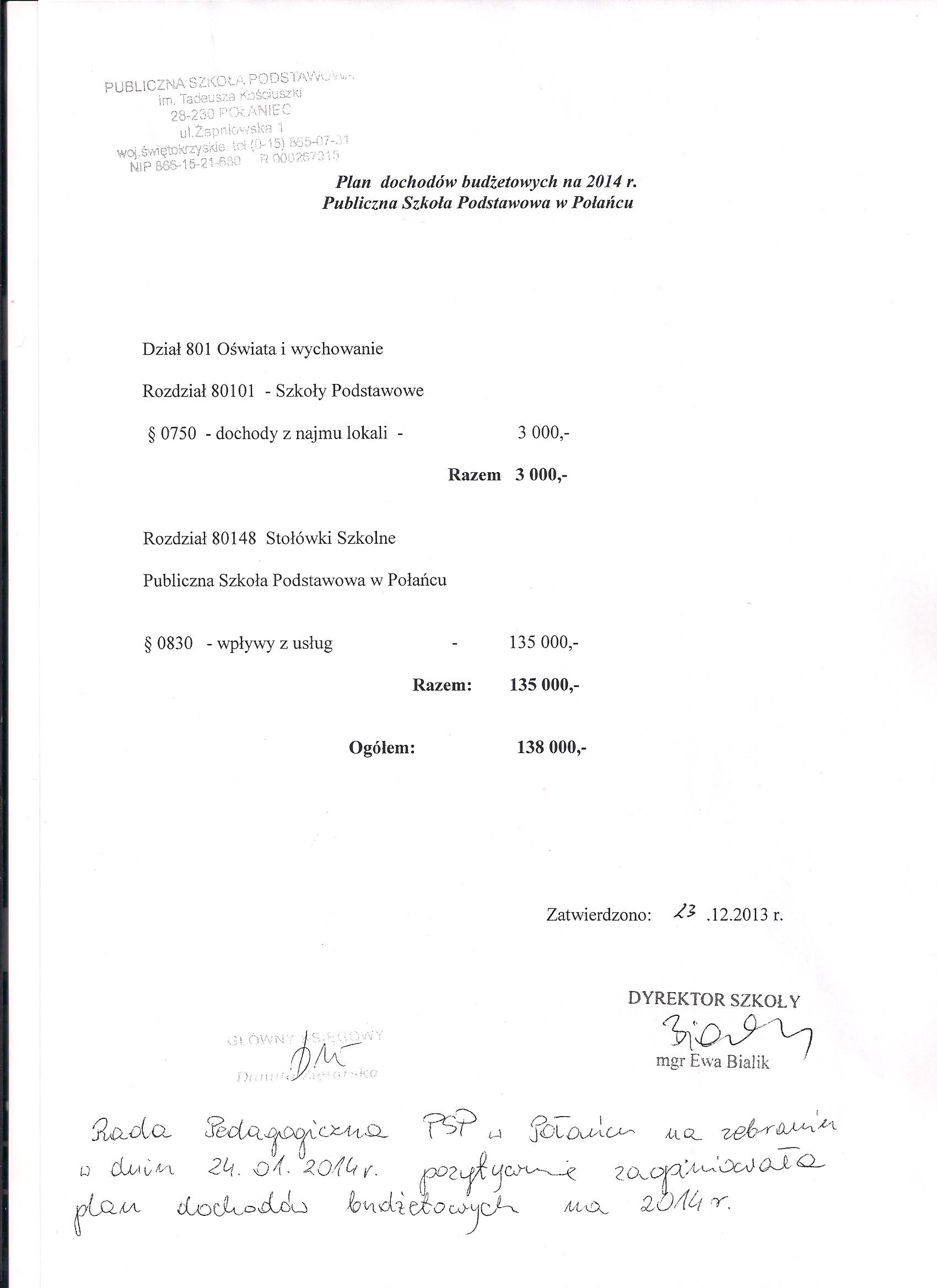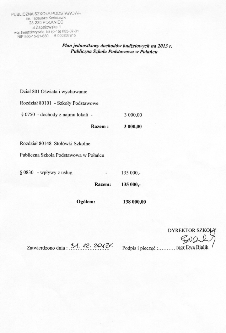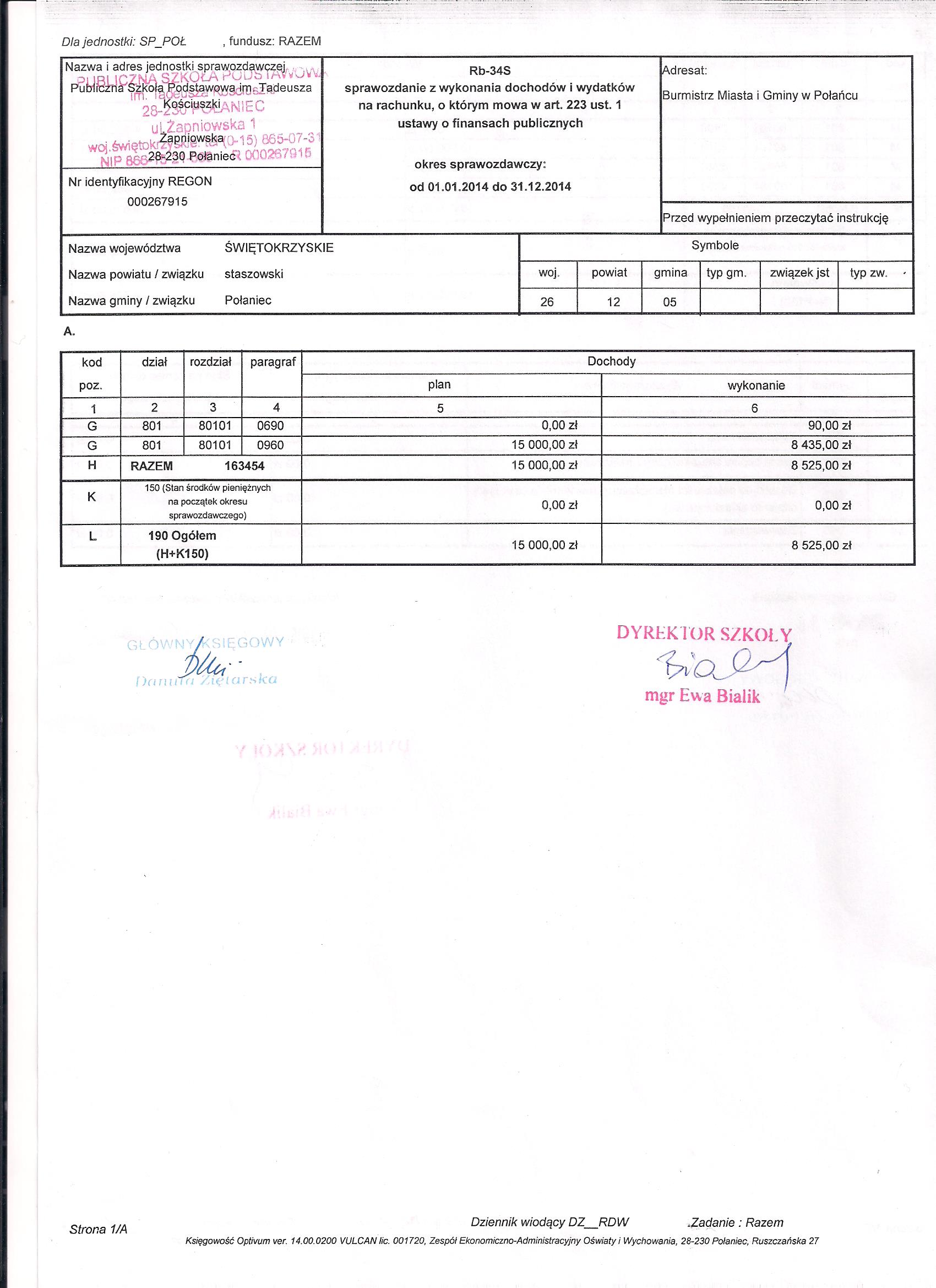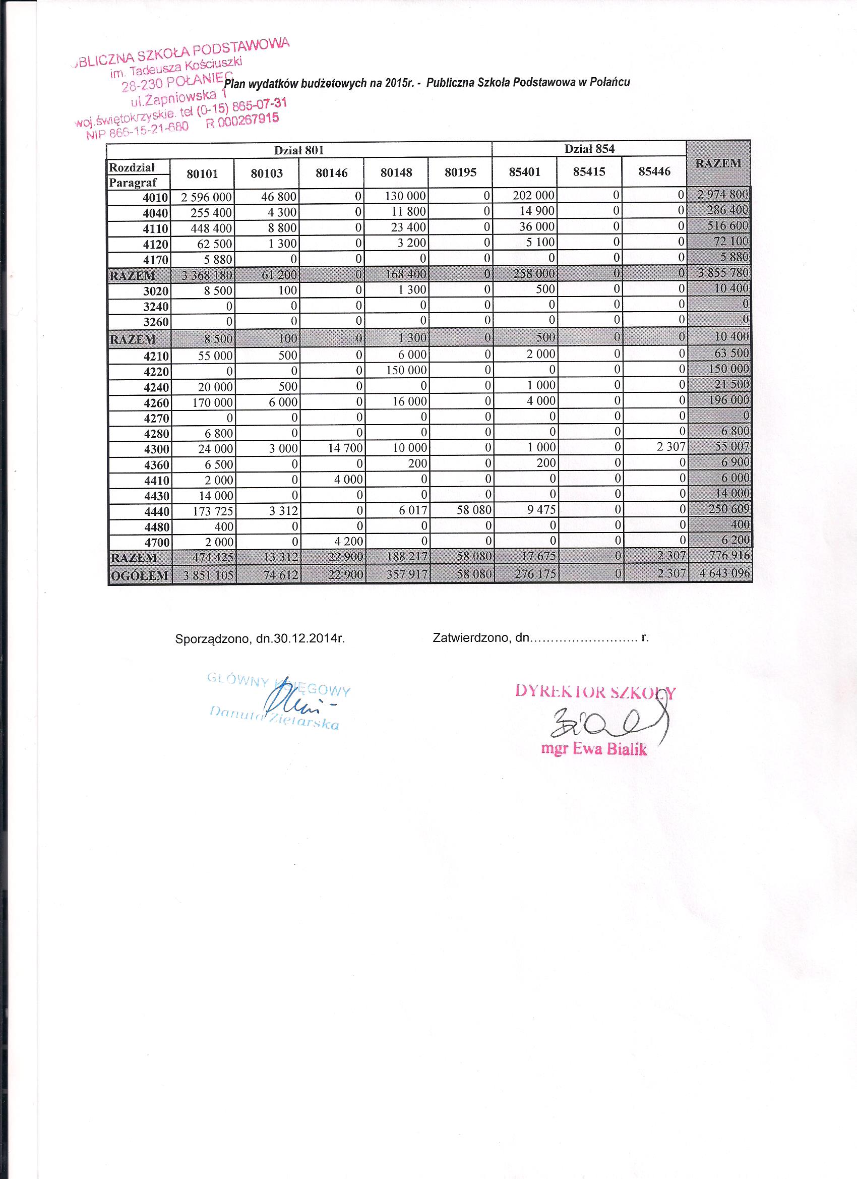 Zarządzenie Nr 2/2015 Dyrektora PSP w Połańcu z dnia 30 stycznia 2015 r. w sprawie zmian w planie finansowym