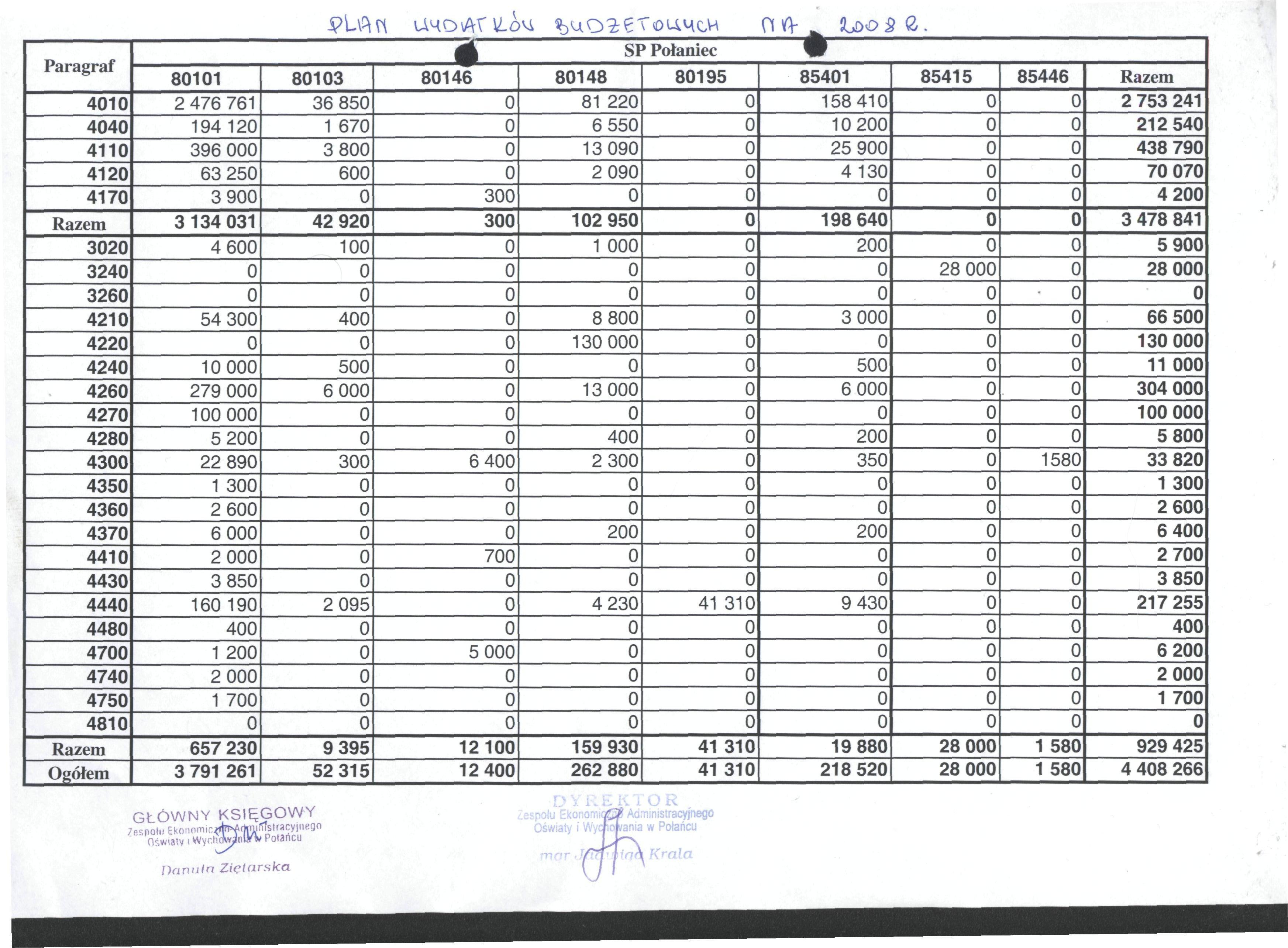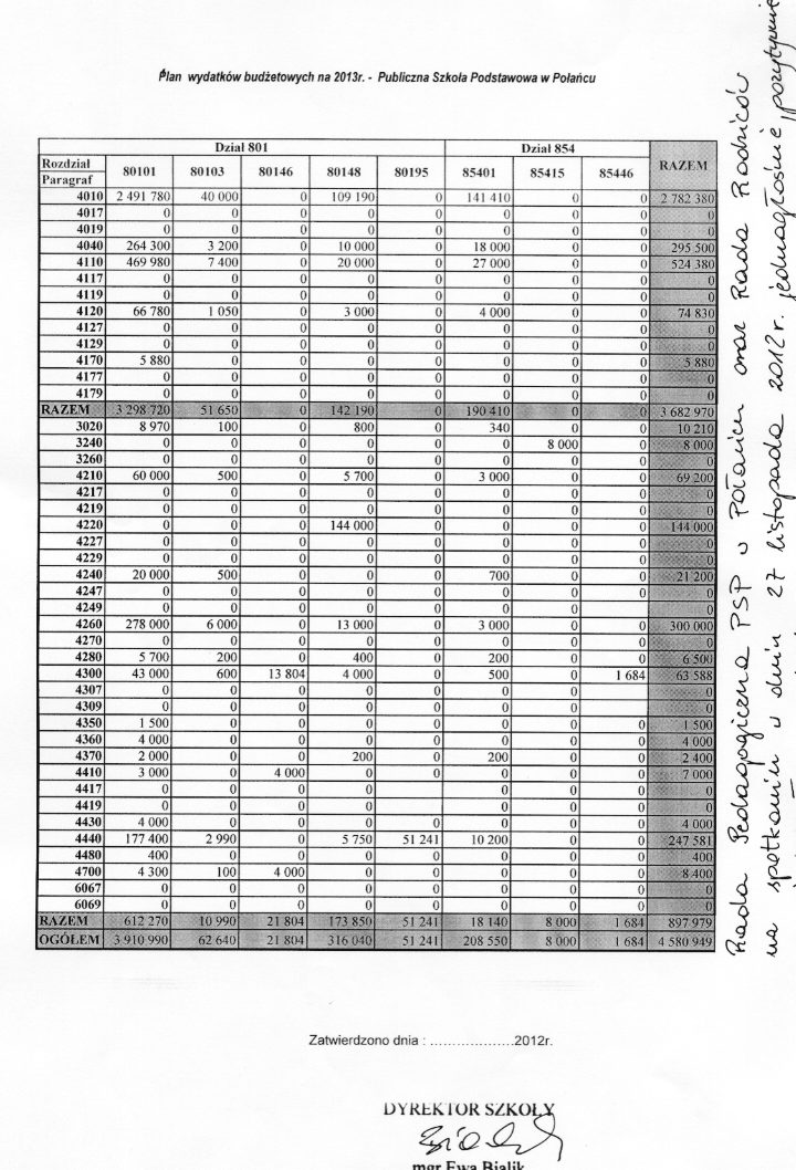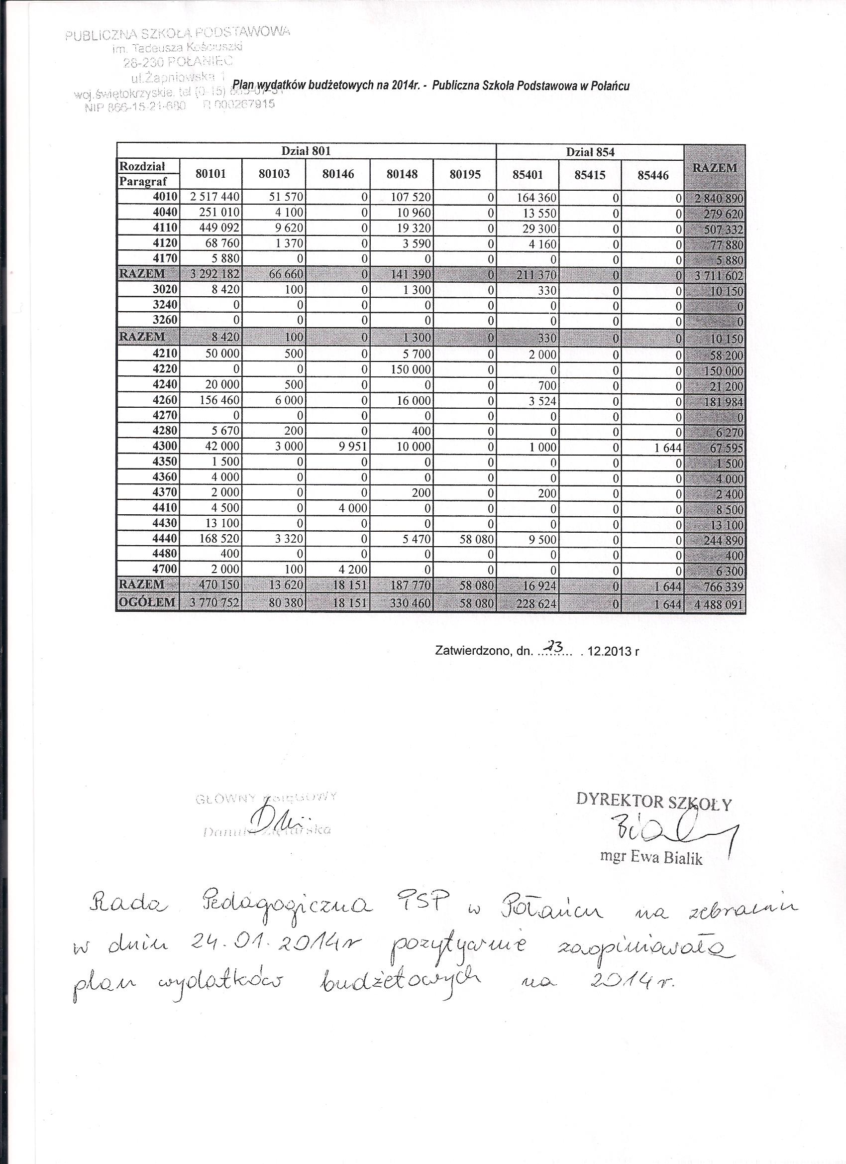 Plan wydatków budżetowych - PSP Połaniec