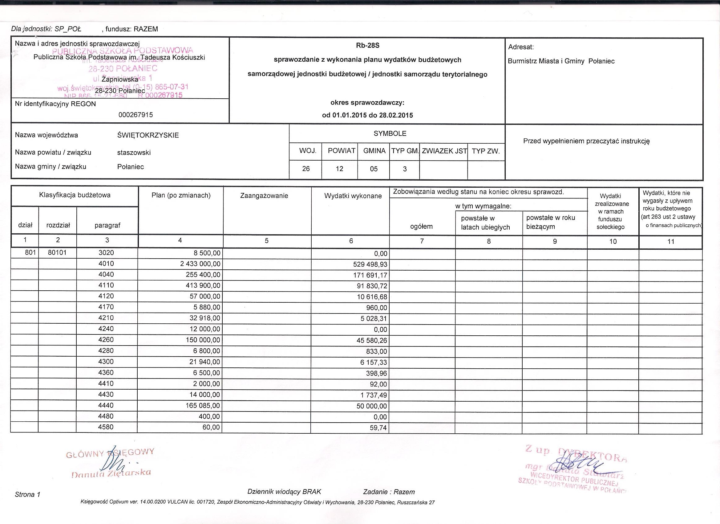 Wykonanie planu wydatków budżetowych str 1