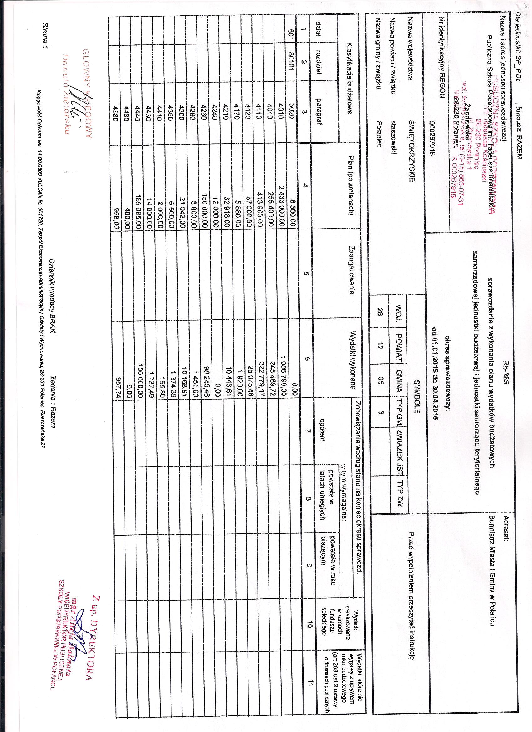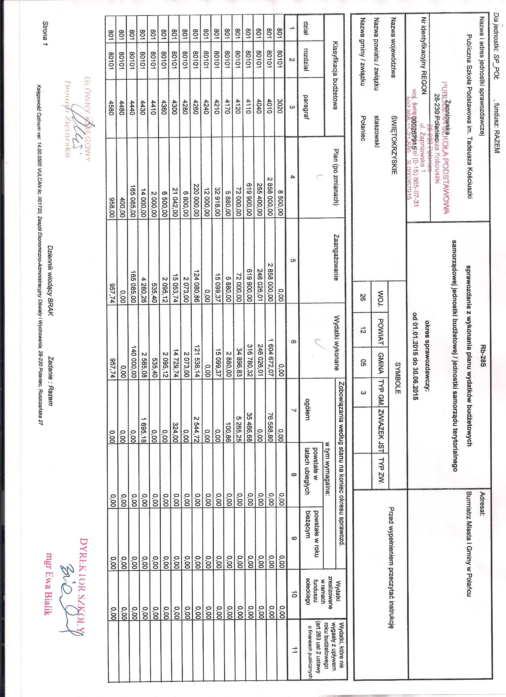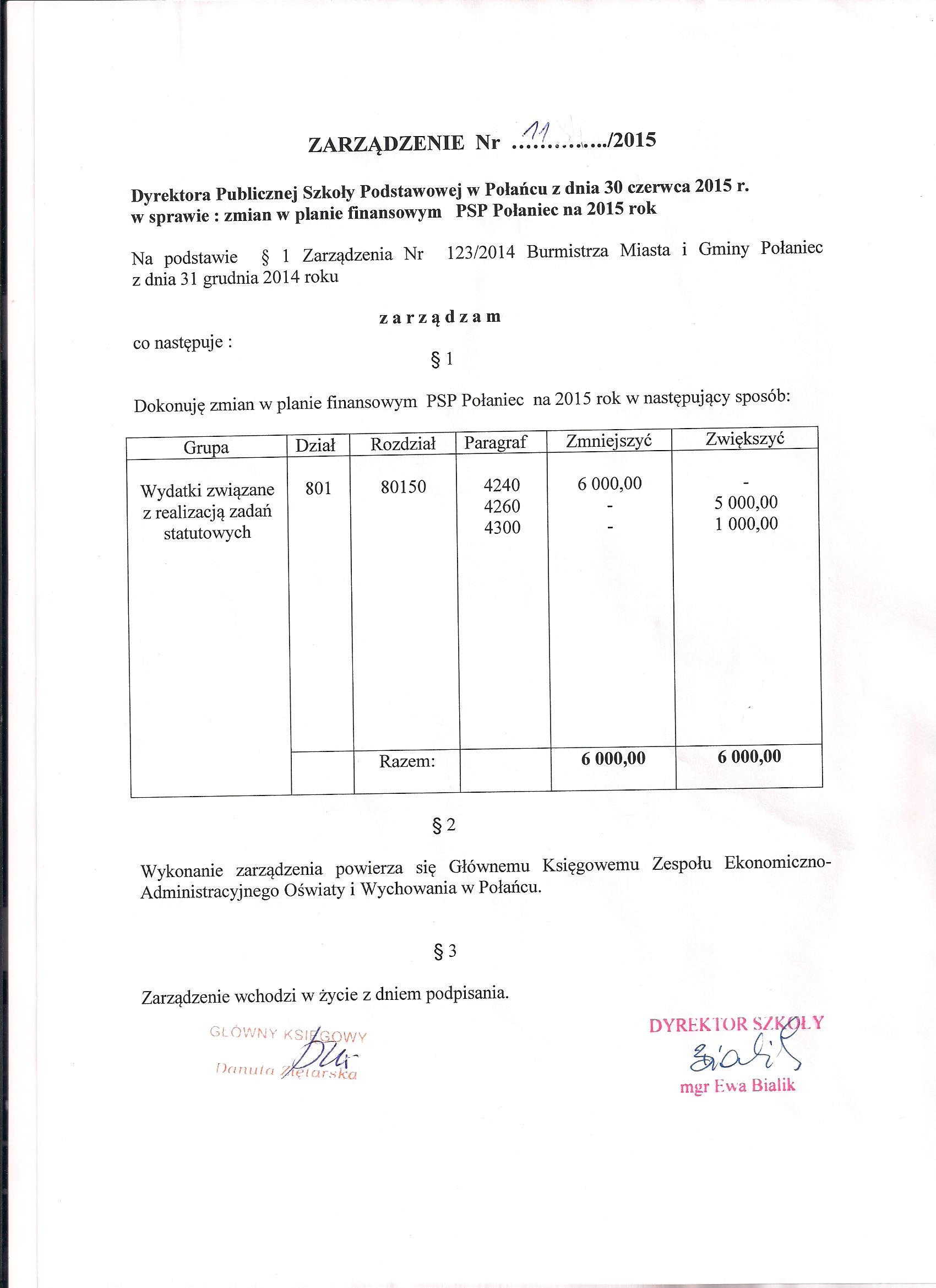 Zarządzenie Nr 11/2015 Dyrektora PSP w Połańcu z dnia 30 czerwca 2015 r. w sprawie zmian w planie finansowym