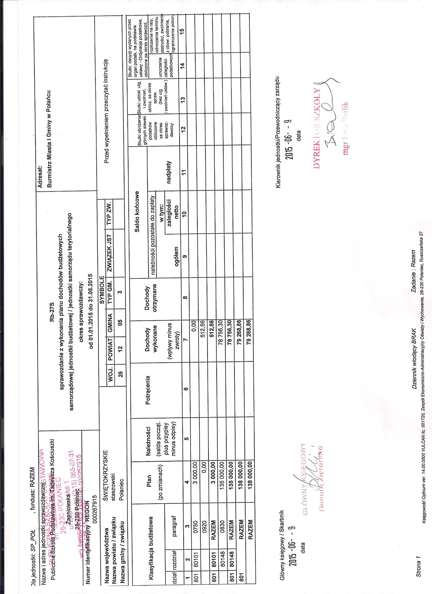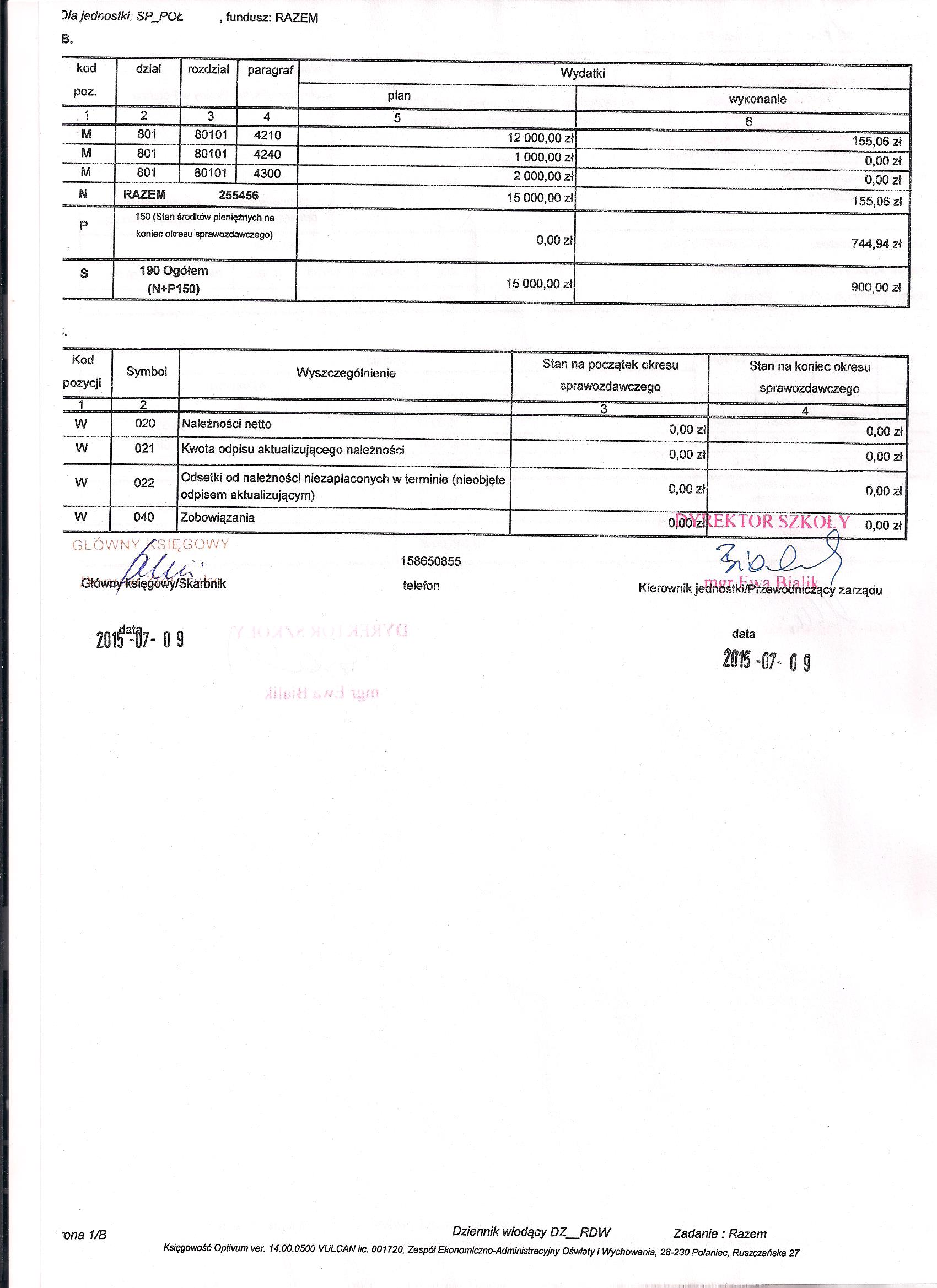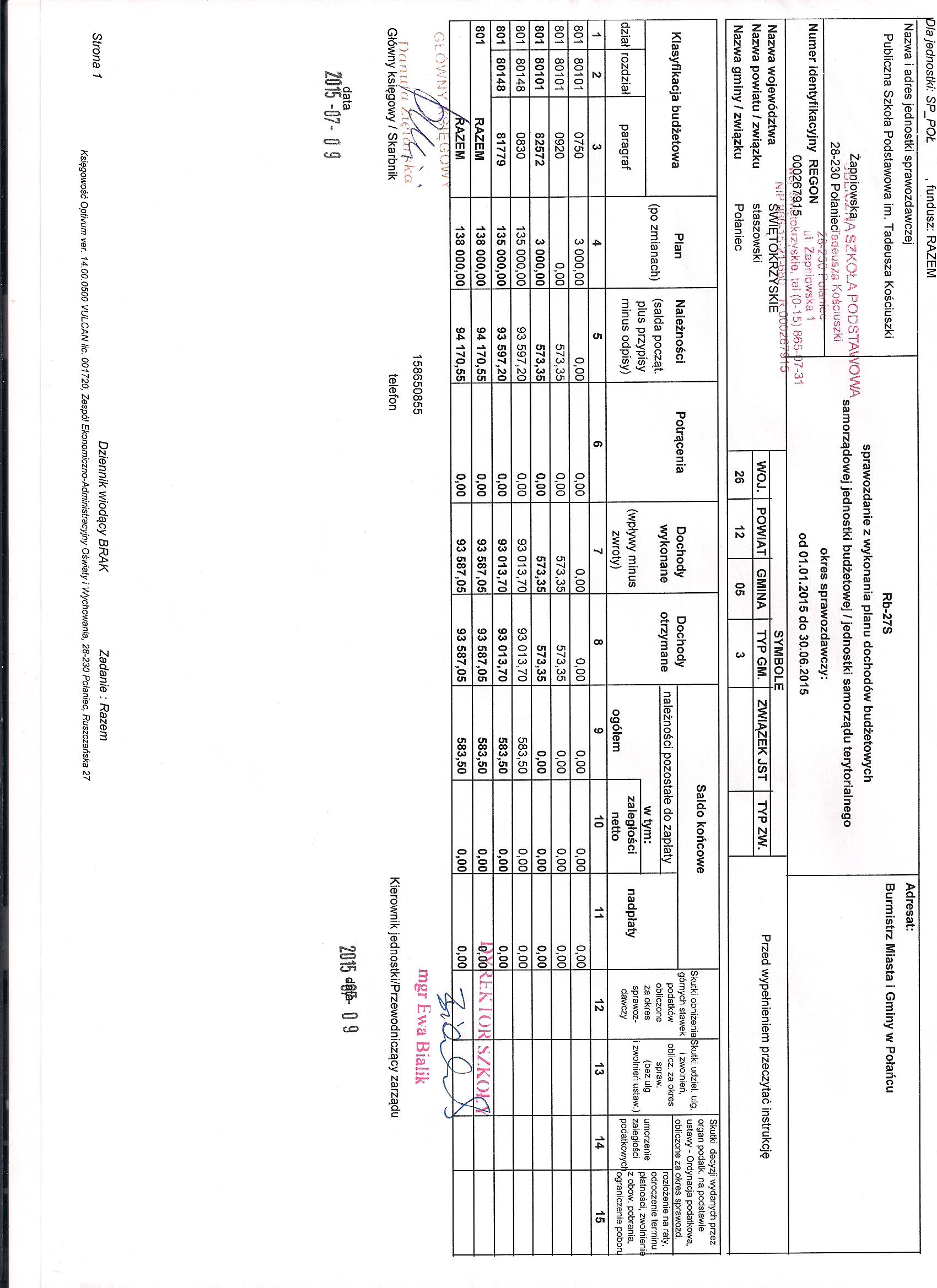 Zarządzenie Nr 11/2015 Dyrektora PSP w Połańcu z dnia 30 czerwca 2015 r. w sprawie zmian w planie finansowym