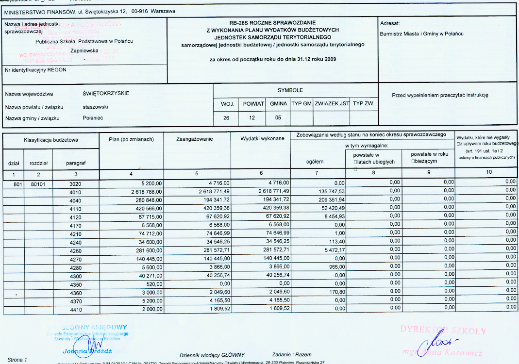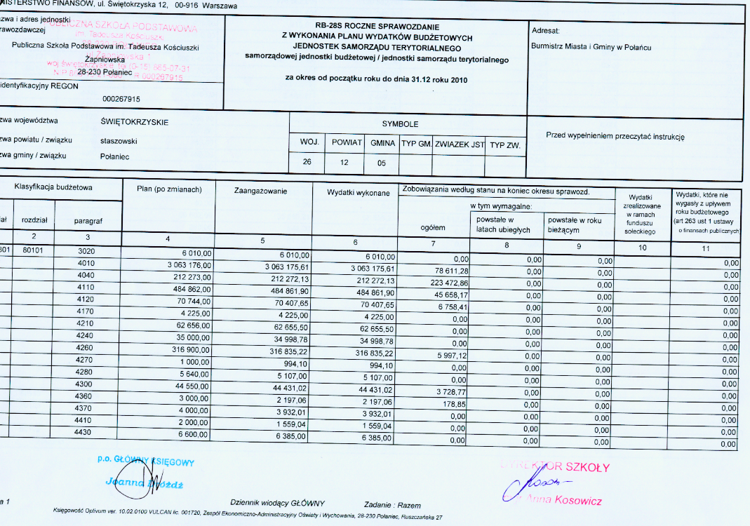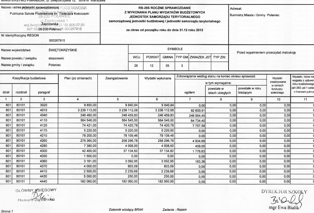 Wykonanie planu wydatków budżetowych - PSP Połaniec
